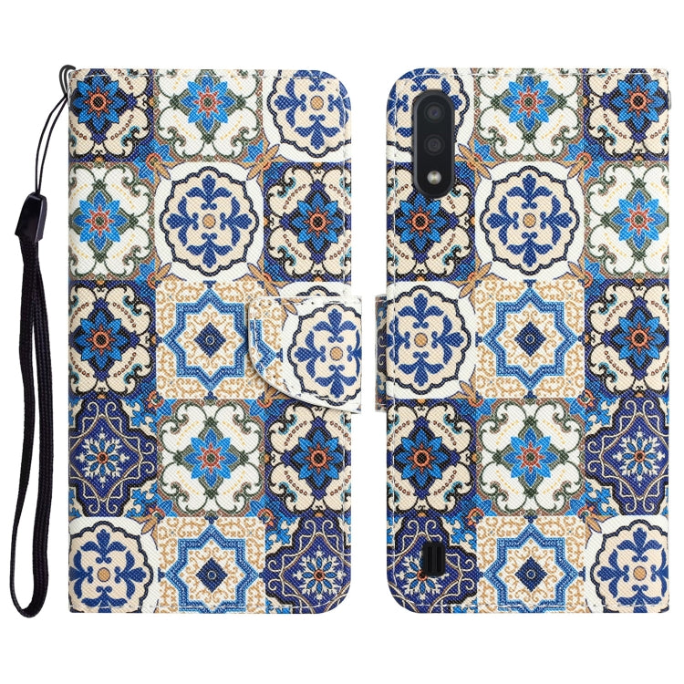 Para Samsung Galaxy A01 Caja de teléfono de cuero con dibujo coloreado (Totem vintage)