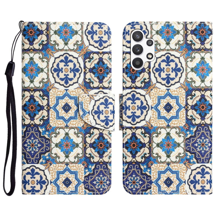 Para Samsung Galaxy A32 5G Estuche para teléfono de cuero con dibujo coloreado (nudo de lazo)
