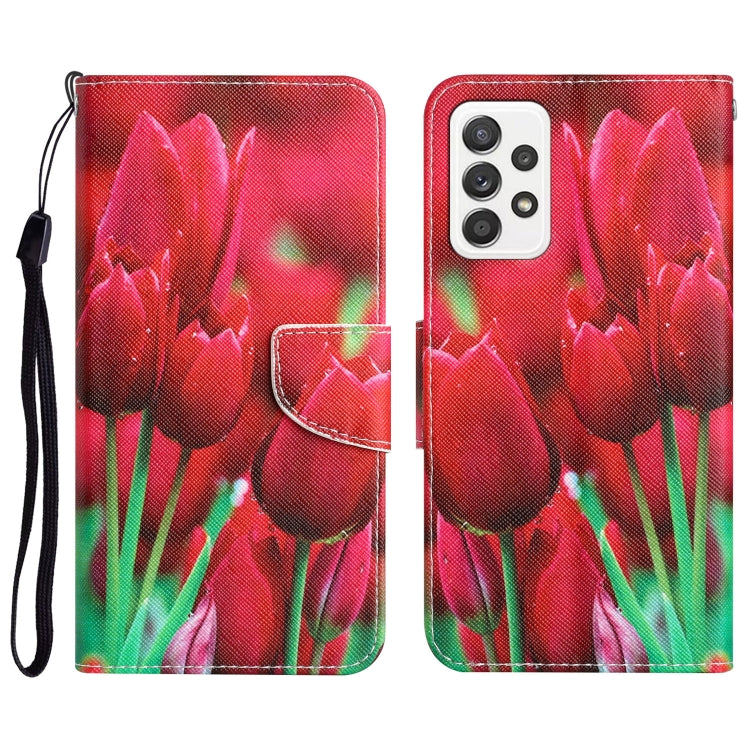 Para Samsung Galaxy A22 5G Estuche de teléfono de cuero con dibujo coloreado (Tulipanes)