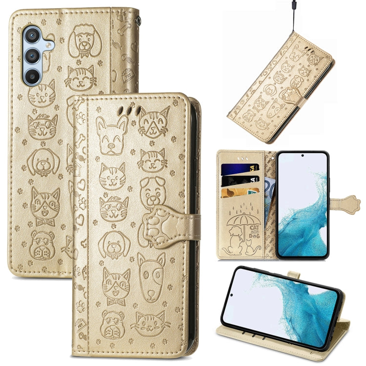 Para Samsung Galaxy A54 5G Cat and Dog Estuche de cuero en relieve para teléfono (Oro)