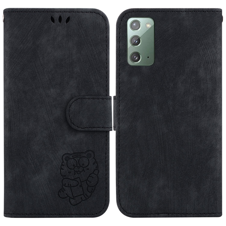 Para Samsung Galaxy Note20 Estuche para teléfono de cuero con relieve Little Tiger (negro)