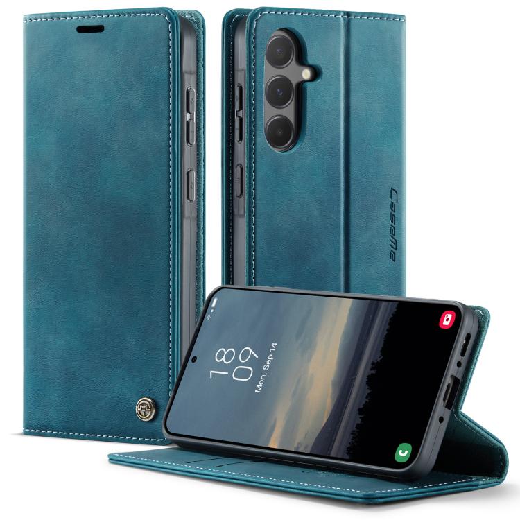 Funda CaseMe 033 para Samsung Galaxy A55, forro de piel de becerro, microfibra y bloqueo RFID (verde)