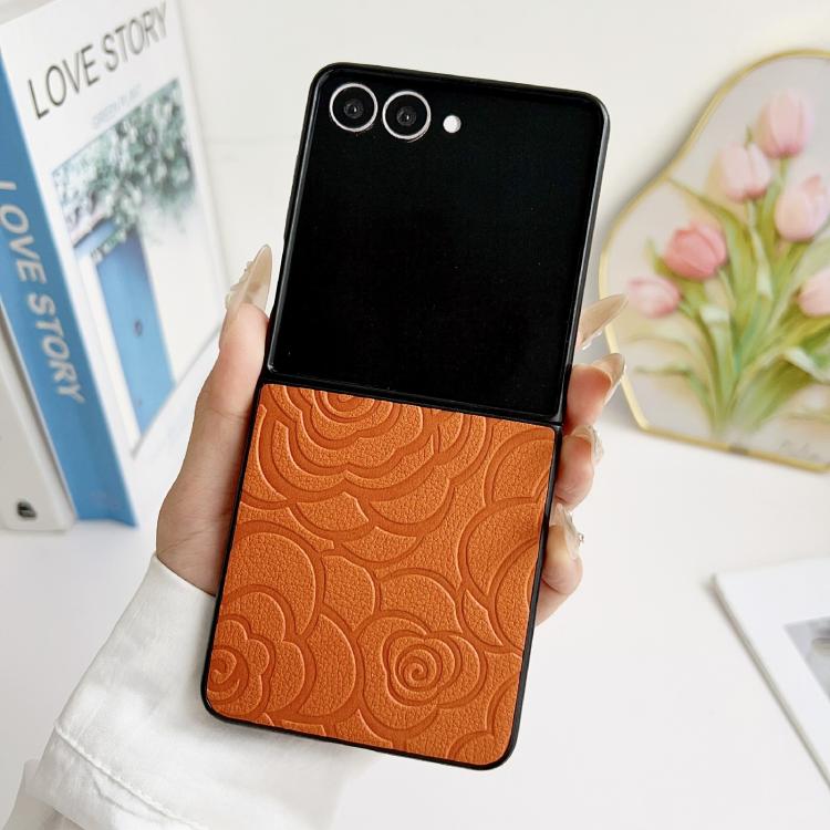 Funda protectora con estampado de camelia para Samsung Galaxy Z Flip7 5G (naranja)