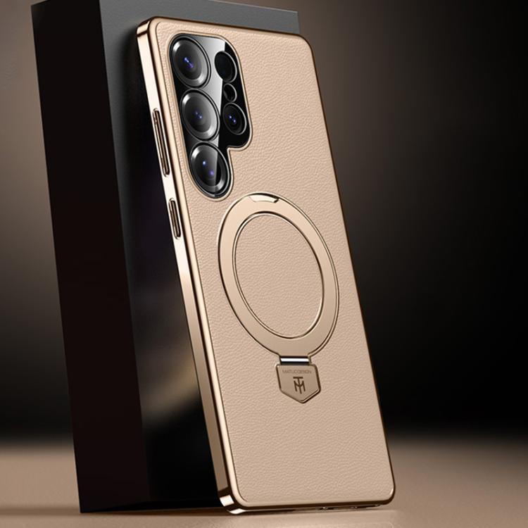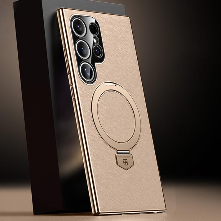 Funda de cuero lisa con soporte MagSafe para Samsung Galaxy S24 Ultra 5G (dorada)