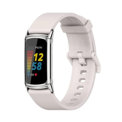 Correa para Fitbit Charge 5 Mijobs Soft Silicone Watch Band (Blanco+Plata)