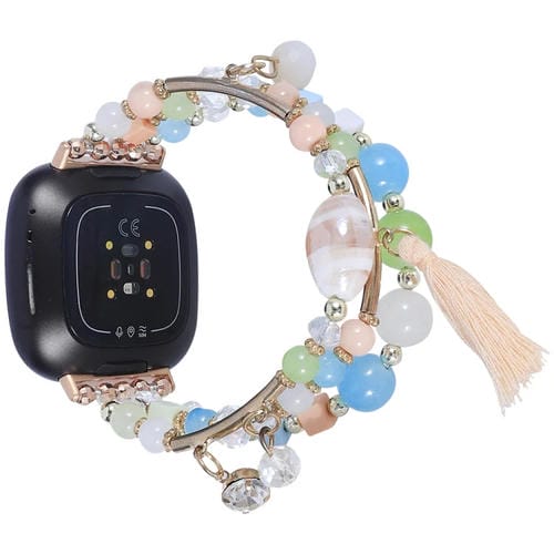 Correa para Fitbit Versa 3 Sense Round Bead Chain Watch Band (Rosa)