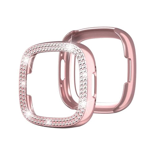 Estuche para Fitbit Versa 4 y Sense 2 con Galvanoplastia de Diamante Doble Fila (Rosa)