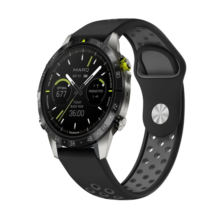 Banda de Reloj 22mm para Garmin Marq Athlete Gen 2 Silicona Transpirable (Negro + Gris)
