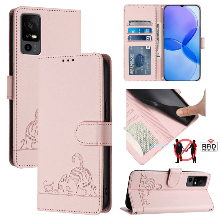 Estuche para TCL 30 Xe 5G CAT Rat de Cuero Rfid con Patrón En Relieve y Cordón (Rosa)
