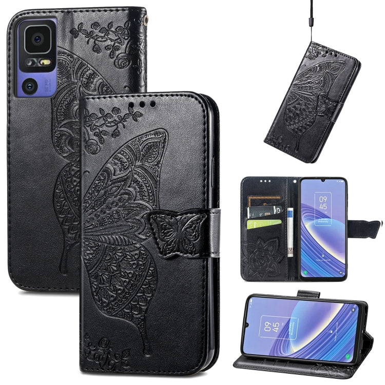 Estuche para TCL 40 Se Butterfly Love Flower de Cuero en Relieve (Negro)