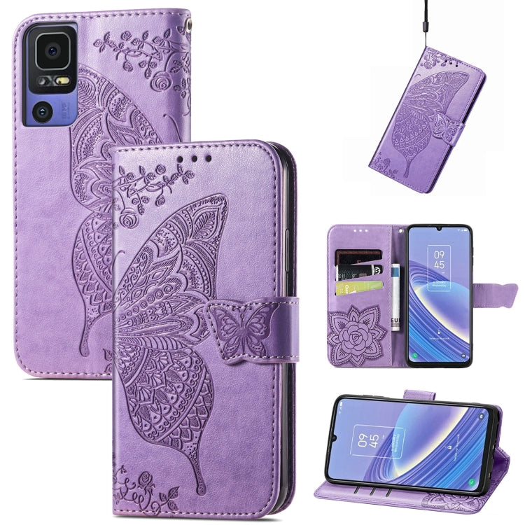 Estuche para TCL 40 Se Butterfly Love Flower de Cuero en Relieve (Lavanda)