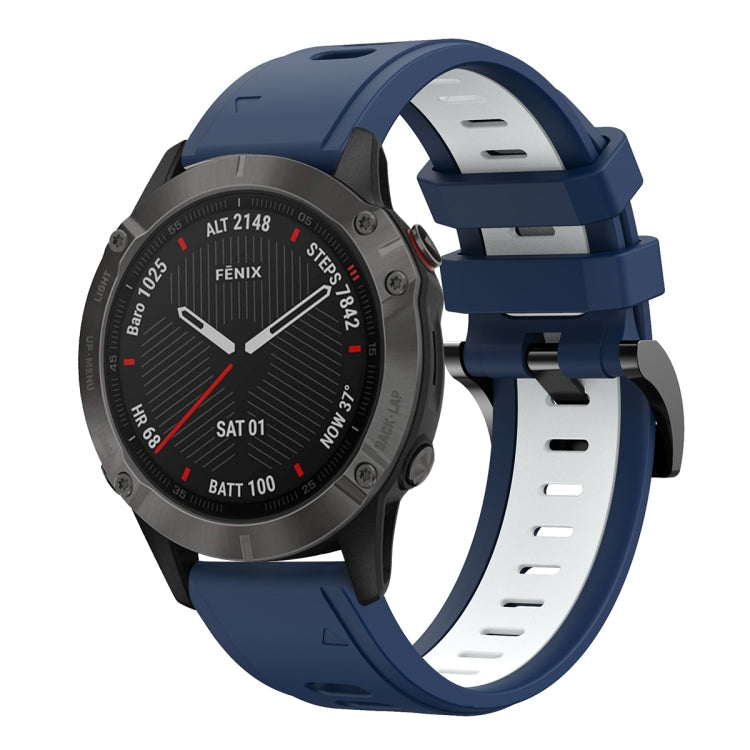 Banda de Reloj de Silicona Deportiva para Garmin Fenix 6X 26mm (Azul Medianoche + Blanco)