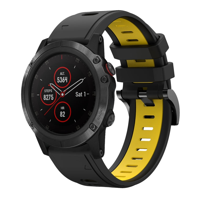 Banda de Reloj de Silicona Deportiva para Garmin Fenix 6X Pro 26mm (Negro + Amarillo)