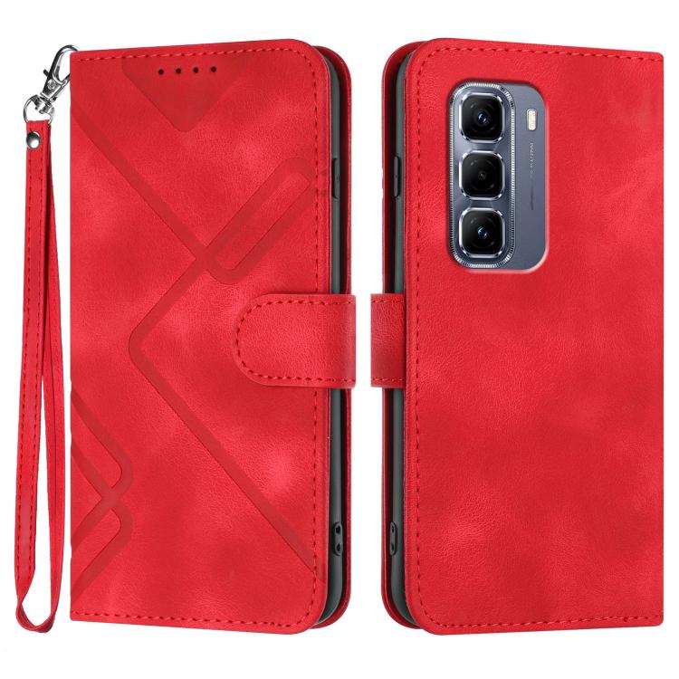 Funda de Cuero Infinix Hot 50 Pro 4G con Diseño de Líneas y Tacto Suave (Rojo)