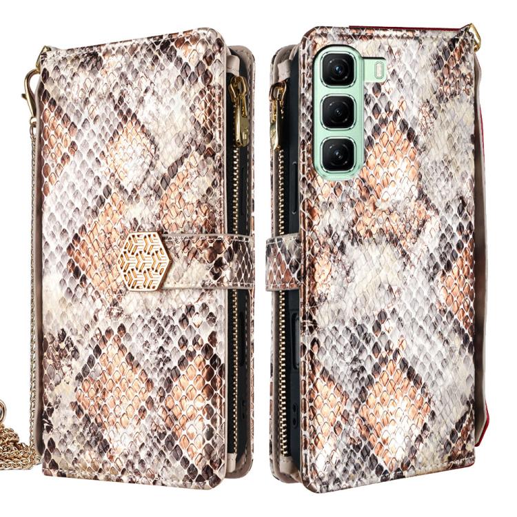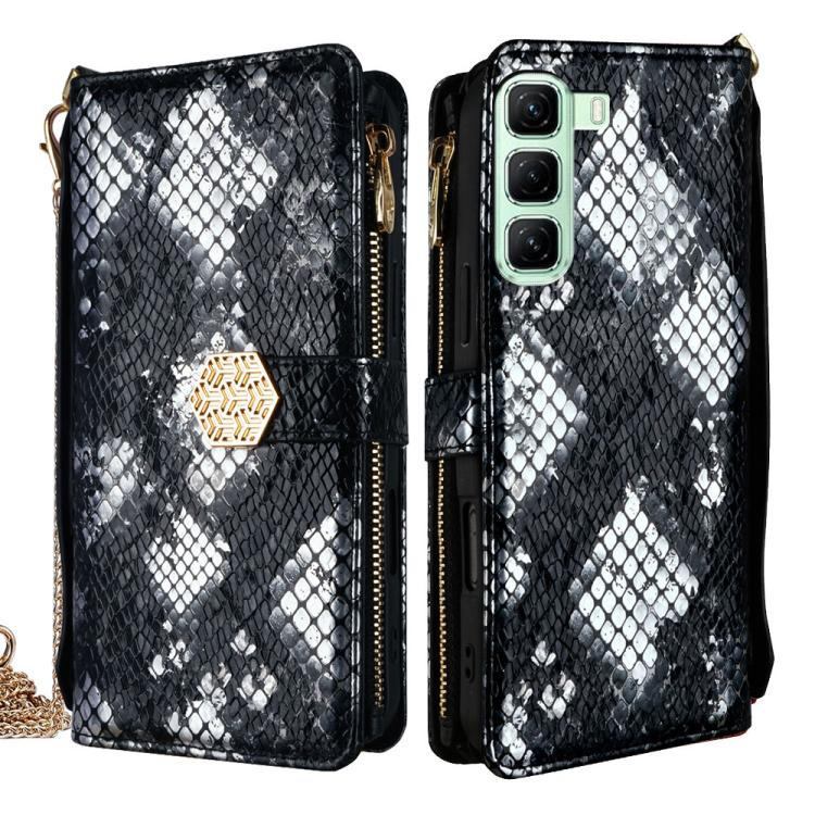 Funda de Piel Textura de Serpiente con Asa Cruzada para Infinix Zero 40 4G (Negra)