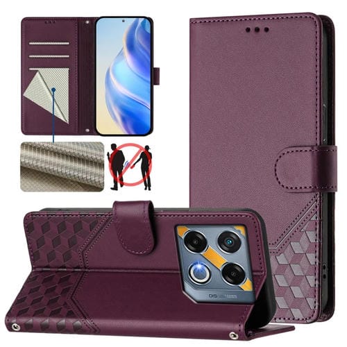 Funda de Cuero Rfid con Relieve en Panal para Infinix Note 40X 5G (Violeta)