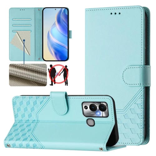 Funda de Cuero Rfid con Relieve en Panal para Infinix Hot 30 4G (Verde Menta)