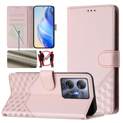 Funda de Cuero Rfid con Relieve en Panal para Infinix Note 12 Pro 5G (Rosa)