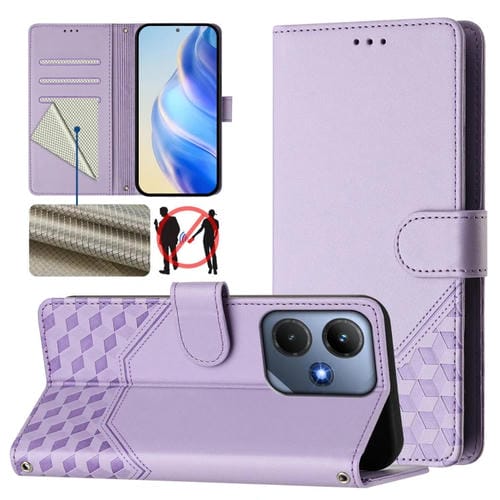 Funda de Cuero Rfid con Relieve en Panal para Infinix Note 30 Pro 4G (Morado Claro)
