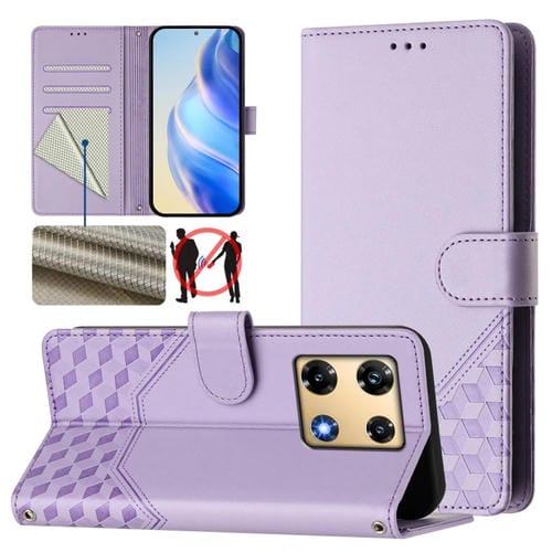 Funda de Cuero Rfid con Relieve en Panal para Infinix Note 40 5G (Morado Claro)