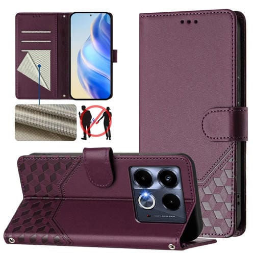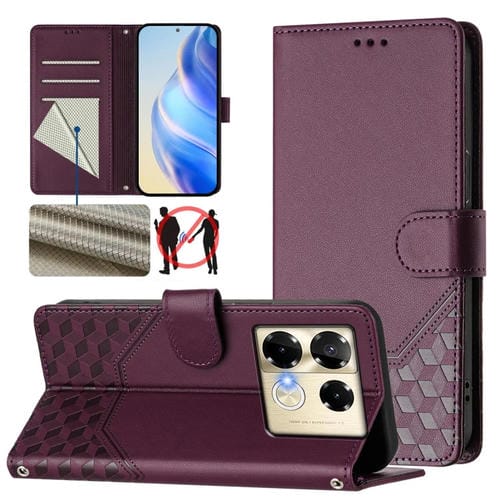 Funda de Cuero Rfid con Relieve en Panal para Infinix Note 40 Pro 5G/4G (Violeta)