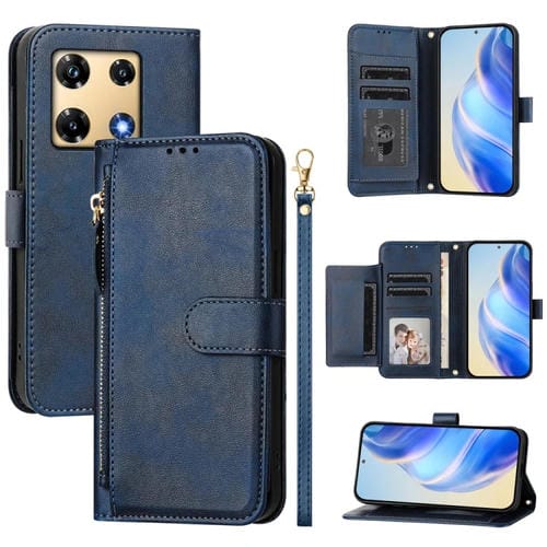 Funda de Cuero con Cremallera y Ranuras para Tarjetas para Infinix Note 30 Pro (Azul)