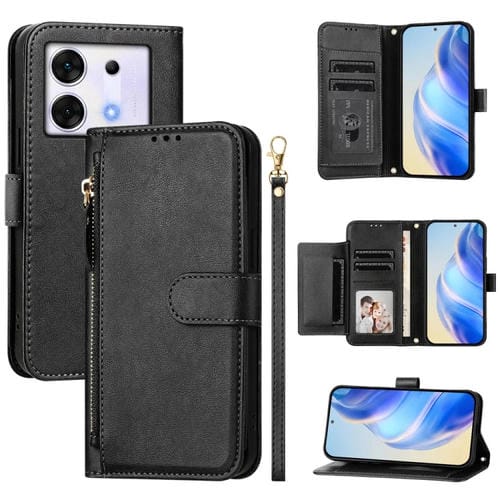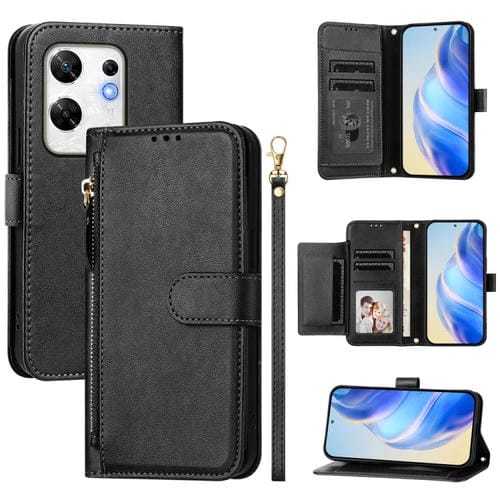 Funda de Cuero con Cremallera y Ranuras para Tarjetas para Infinix Zero 30 5G (Negro)