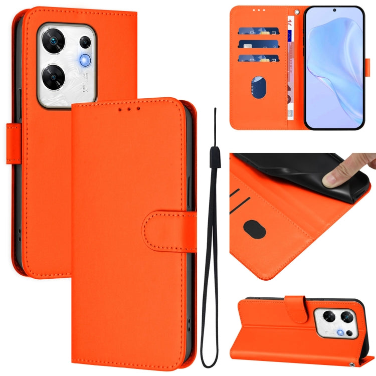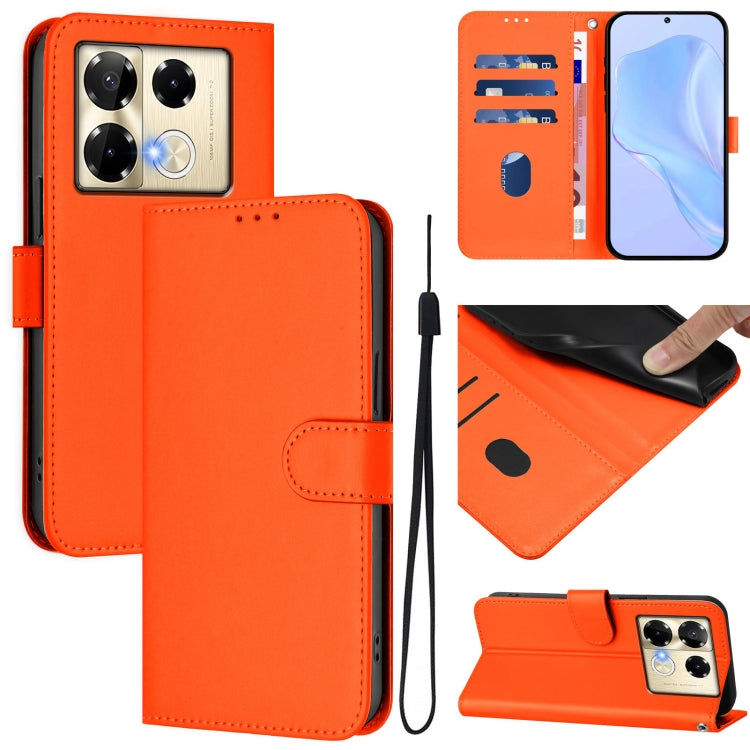 Funda de Cuero para Infinix Note 40 Pro 4G con Textura de Piel y Cordón (Naranja)