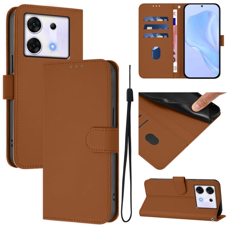 Funda de Cuero con Cordón para Teléfono Infinix Zero 30 5G con Tacto de Piel (Marrón)