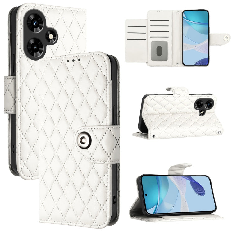 Funda de Cuero con Tapa y Textura Rombal para Infinix Note 30I con Cordón (Blanco)