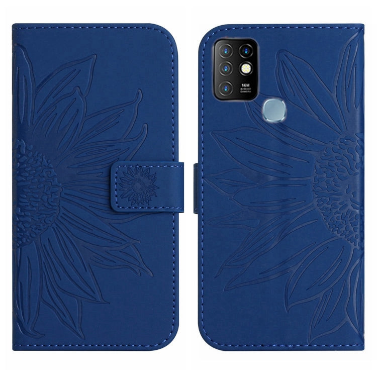 Funda Flip de Cuero para Infinix Hot 12 con Cordón y Diseño Sun Flower (Azul Tinta)