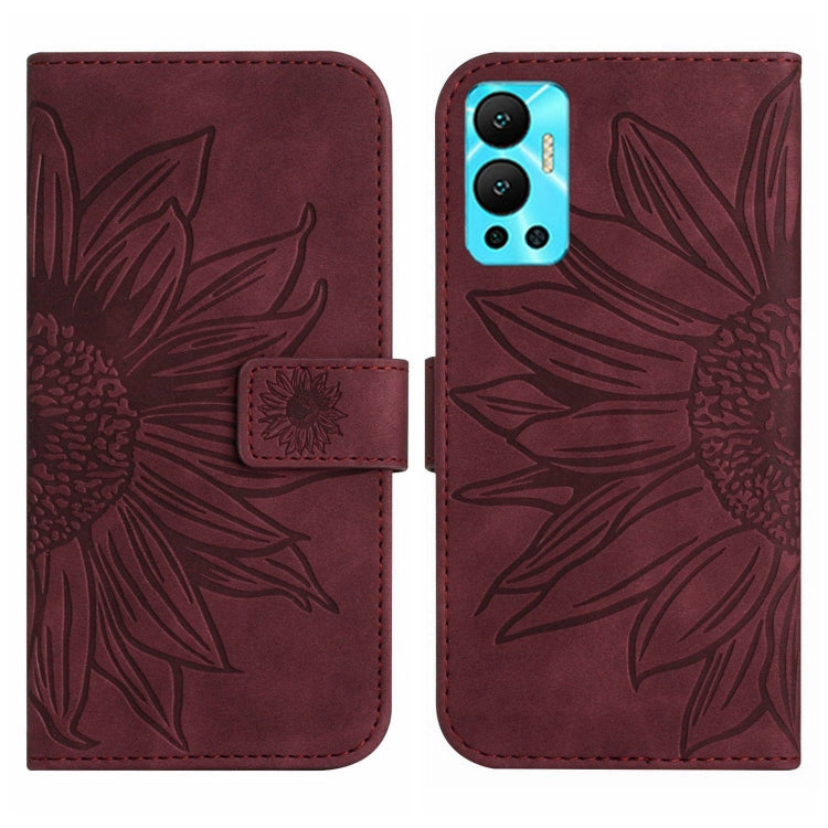 Funda Flip de Cuero para Infinix Hot 11S con Cordón y Diseño Sun Flower (Rojo Vino)