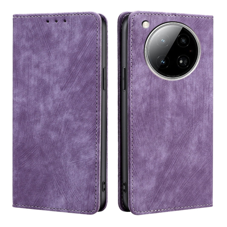 Funda de Cuero Magnética con Cepillo Antirrobo RFID para Infinix Zero 40 4G (Morado)