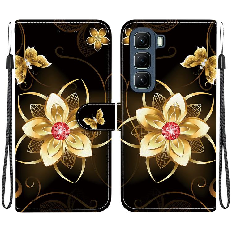 Funda de Cuero con Dibujo y Textura de Cristal para Infinix Hot 50 5G (Flor Dorada)