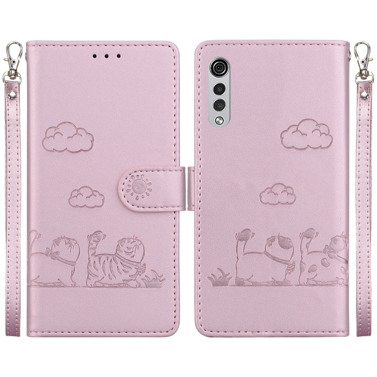 Funda de Cuero Rfid para LG Velvet/G9 4G/G9 5G con Diseño de Gatos (Oro Rosa)