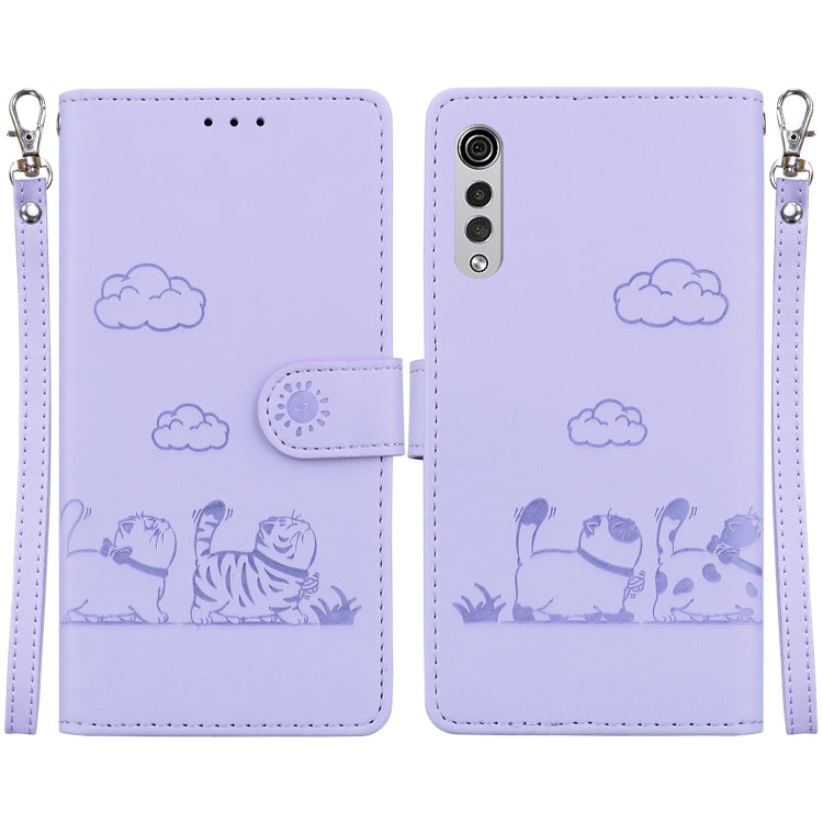 Funda de Cuero Rfid con Diseño de Gatos para LG Velvet/G9 4G/G9 5G (Morado)