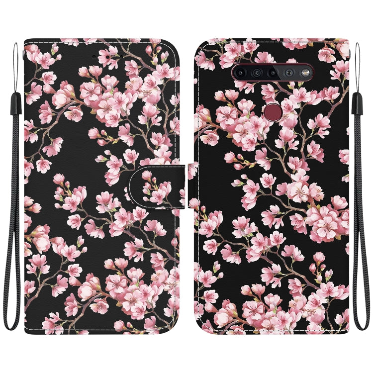 Estuche de Cuero para LG K61 con Dibujo Coloreado y Textura de Cristal (Flores de Cerezo)