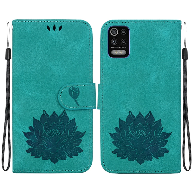 Funda de Cuero para LG K52 / K62 / Q52 con Relieve de Loto para Teléfono (Verde)