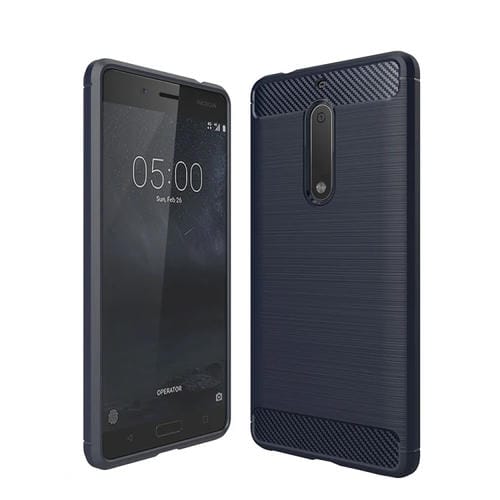 Carcasa TPU Suave Fibra de Carbono con Textura Cepillada para Nokia 7.1 (Azul Marino)