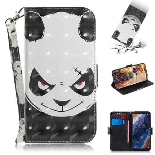 Estuche de Cuero con Tapa Horizontal para Nokia 9 con Dibujo Oso Enojado 3D y Soporte