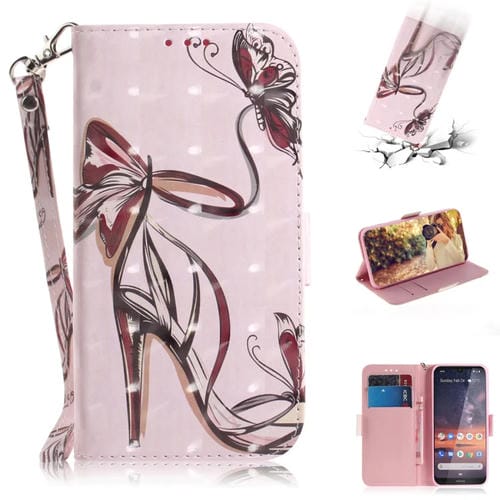 Estuche de Cuero con Tapa Horizontal y Dibujo 3D para Nokia 4.2 con Soporte y Ranuras