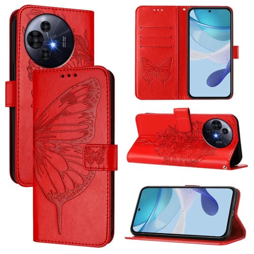 Funda de Cuero con Relieve Mariposa para Teléfono TCL 50 Pro Nxtpaper (Rojo)
