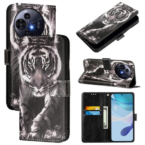 Funda de Cuero Nxtpaper para TCL 50 Pro con Patrón de Dibujo (Rosas Sobre Negro)