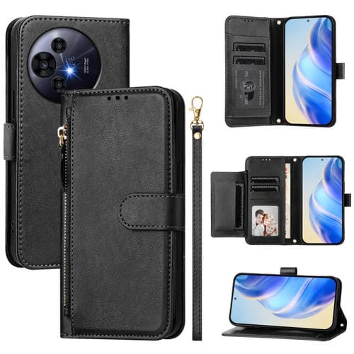Funda de Cuero con Cremallera y Ranuras para Tarjetas para TCL 50 Pro Nxtpaper (Negro)