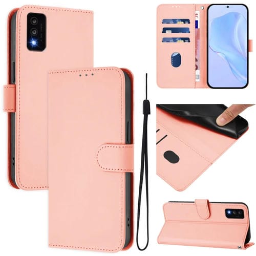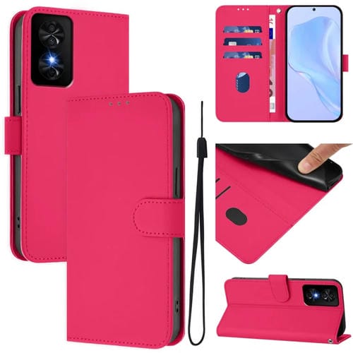 Funda de Piel con Cordón para Teléfono TCL 50 Se con Tacto de Piel (Rojo Rosa)