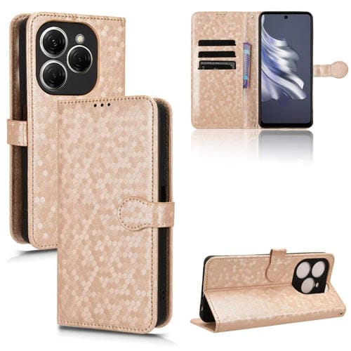 Funda de Cuero para Tecno Spark 20 Pro con Textura Honeycomb Dot (Dorado)