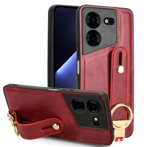 Funda para Tecno Pova 5 Pro con Contraportada de Costura y Patrón de Vaca (Rojo)