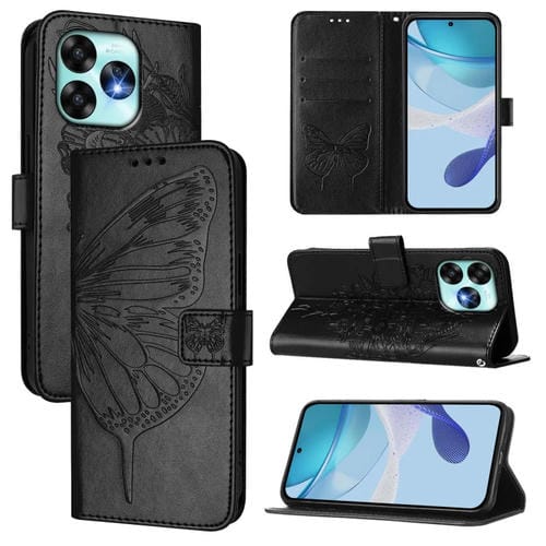 Funda de Cuero para Teléfono Umidigi A15 A15C A15T con Mariposa En Relieve (Negra)