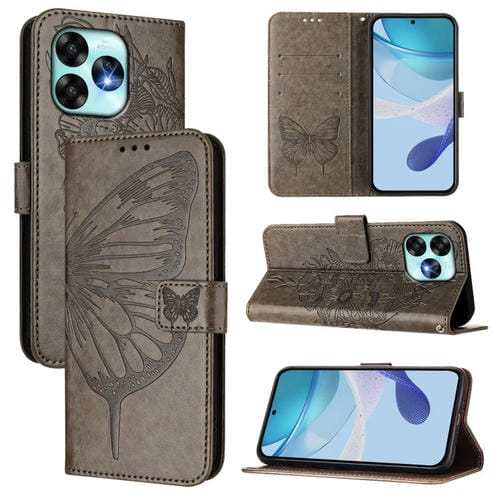Funda de Cuero para Umidigi A15/A15C/A15T con Diseño de Mariposa En Relieve (Gris)