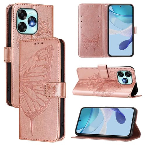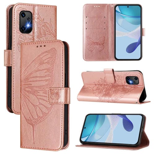 Funda de Cuero para Umidigi Bison X20 con Diseño de Mariposa En Relieve (Oro Rosa)